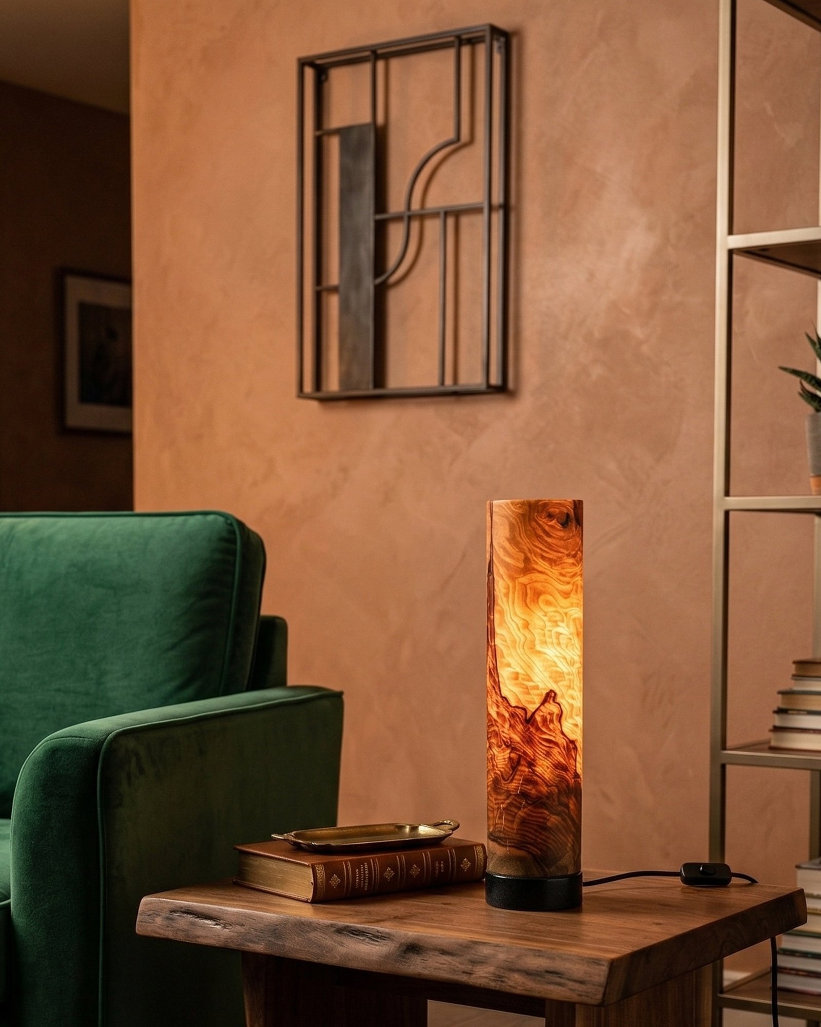 ahşap masa lambası, özellikle uyumlu ve doğal bir görünüme sahiptir.