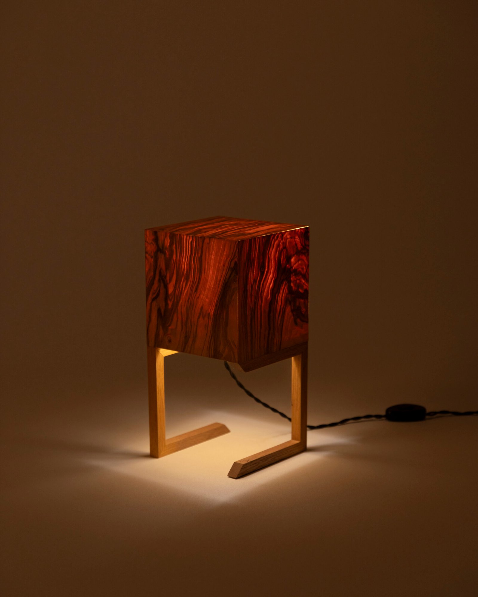 Renkli dişbudak kaplamalı, kompakt ahşap masa lambası
