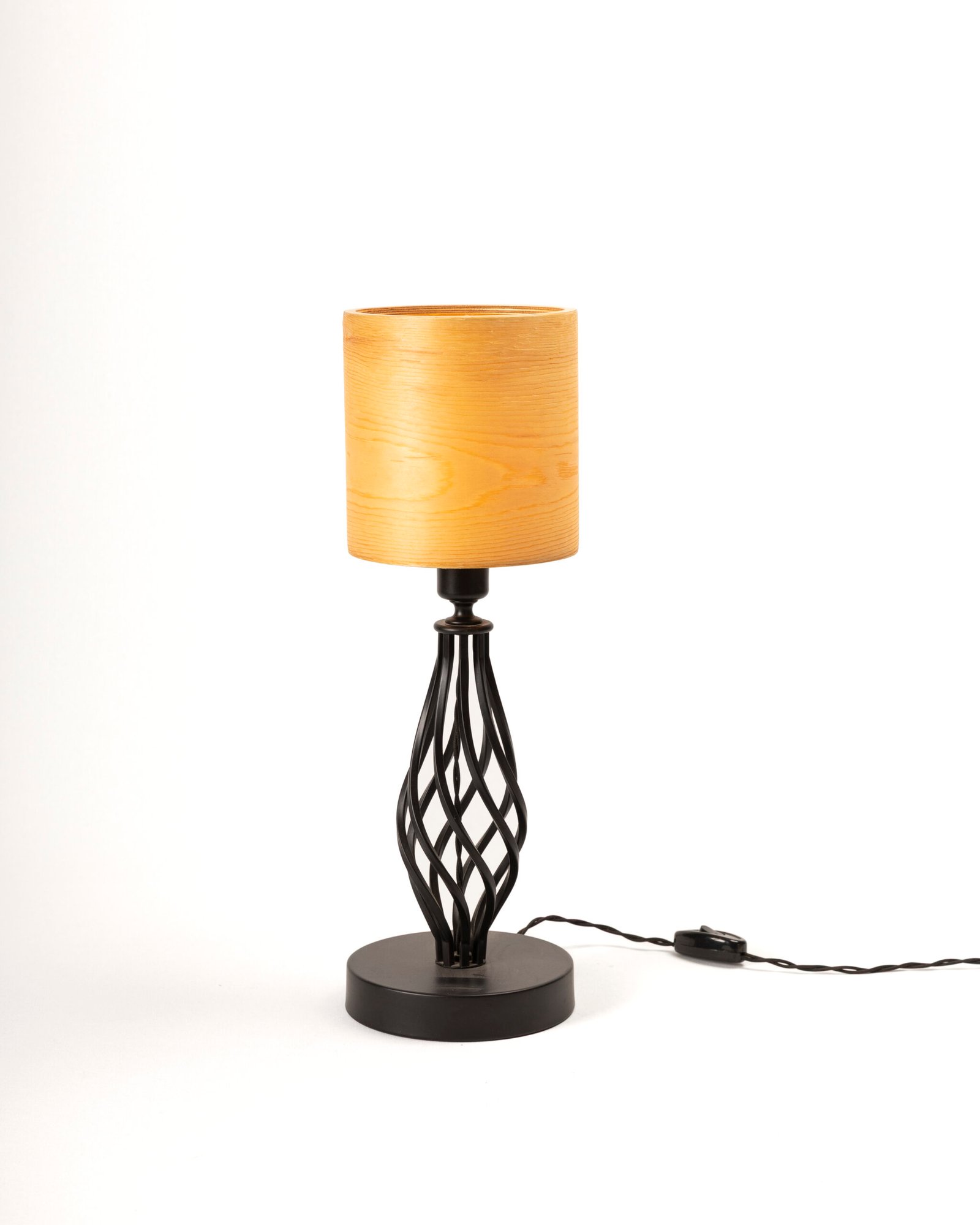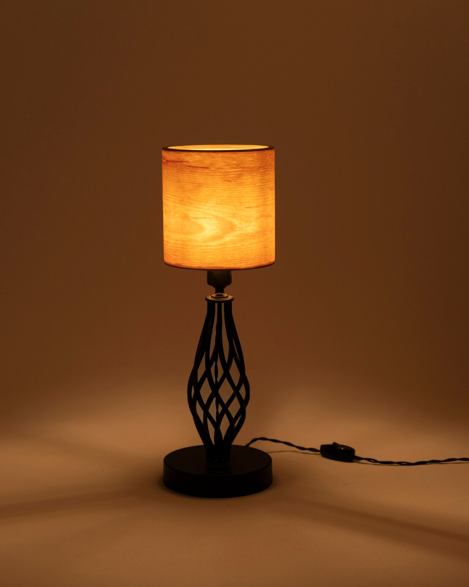 Holz Tischlampe mit Eiche Furnier und schwarzem Metallkörper