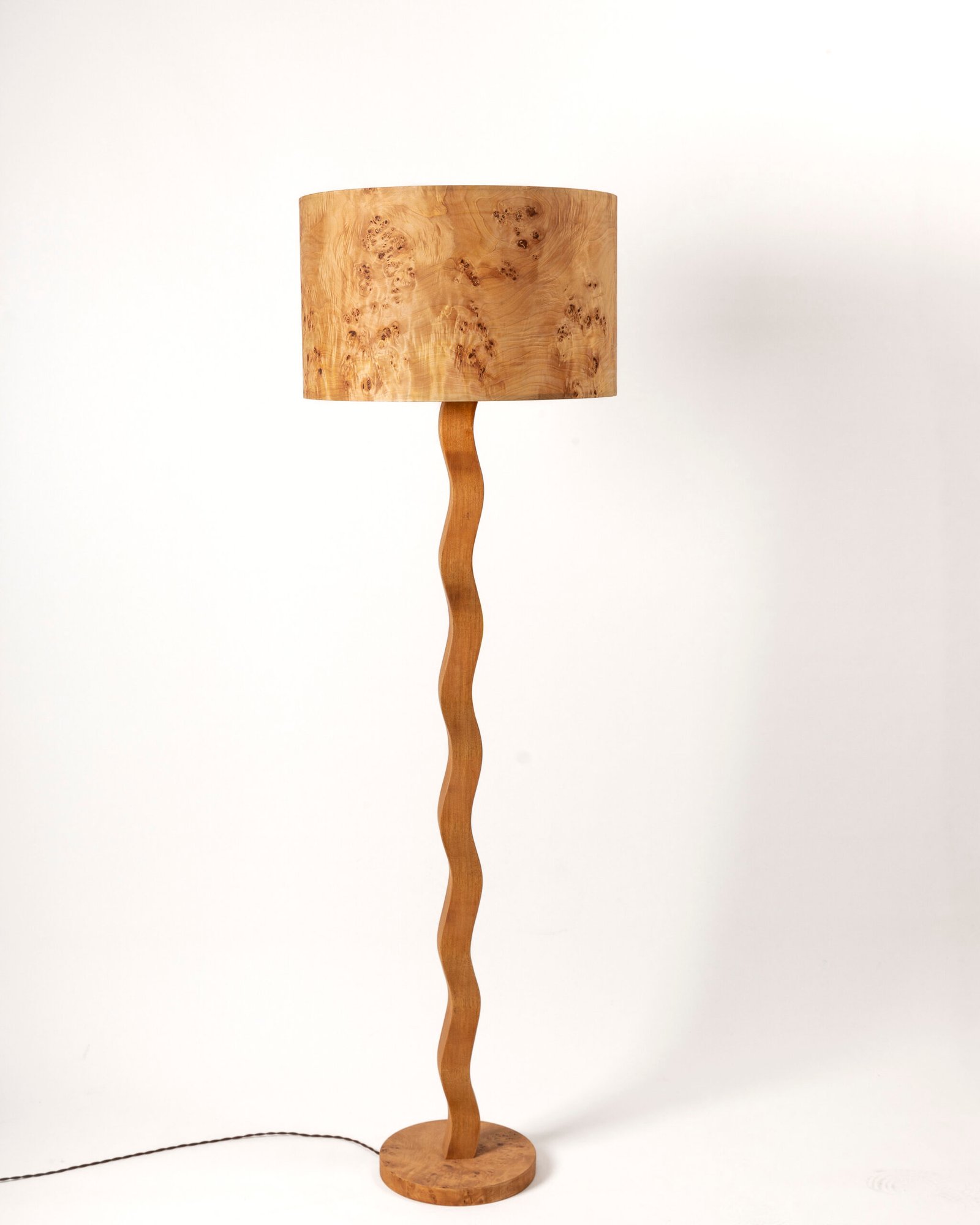 Lámpara de pie de madera KAARME es una lámpara artesanal diseñada con chapa de madera Mazel que aporta una iluminación cálida y elegante a espacios modernos.