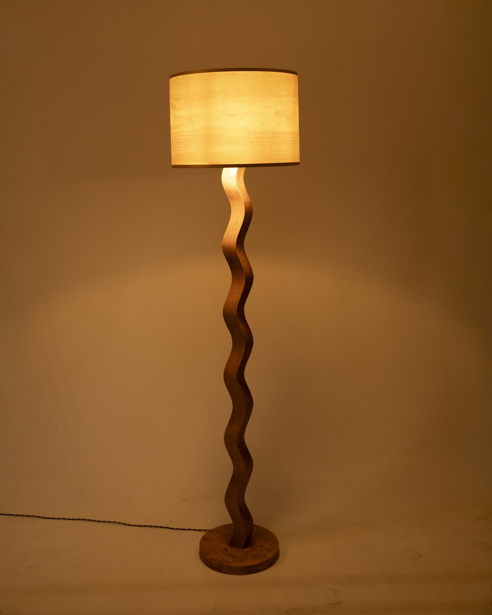 - Handgefertigte Stehlampe aus Kiefer Holzfurnier