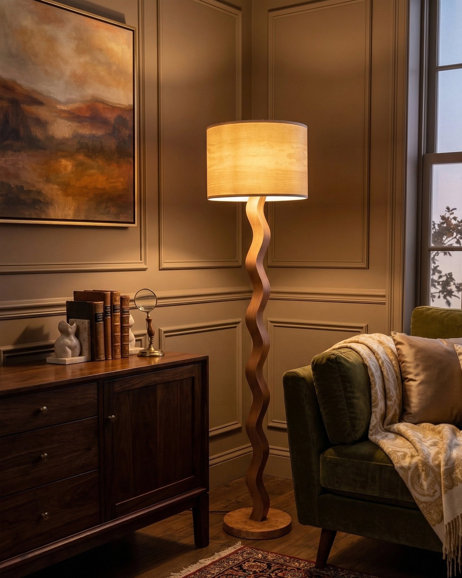 Die KAARME Stehlampe aus Kiefernholz bringt die ruhige und warme Ausstrahlung natürlicher Materialien in moderne Wohnkonzepte. Ihre klare Linienführung und die feine Holzstruktur machen sie zu einem stilvollen Bestandteil anspruchsvoller Innenräume.
