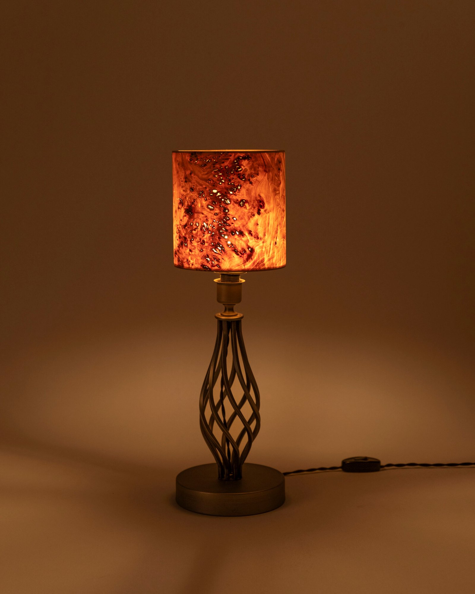 Holz Tischlampe mit Mazel Furnier und Kupferkörper