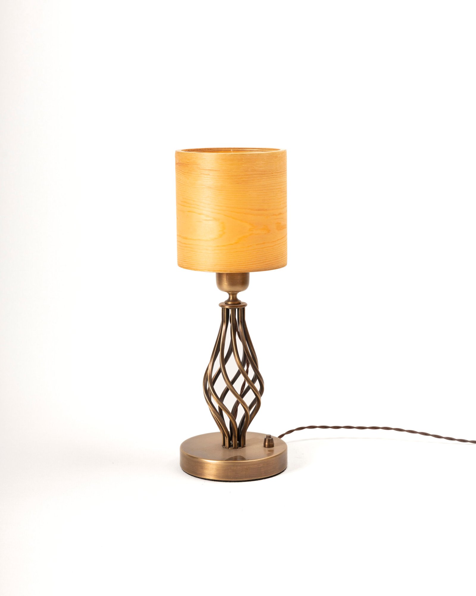 Holz Tischlampe mit Kiefernholz und Kupferkörper