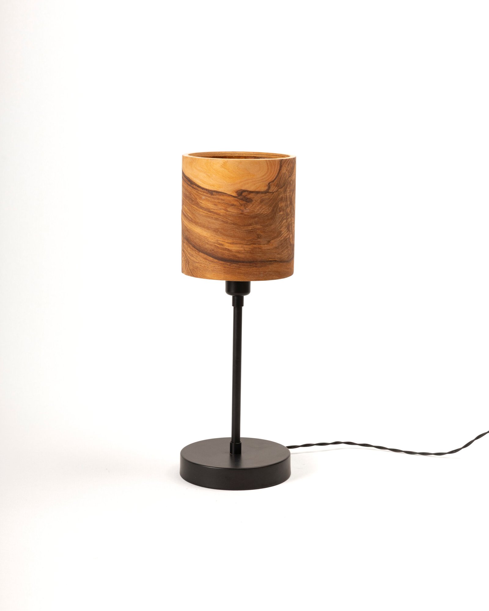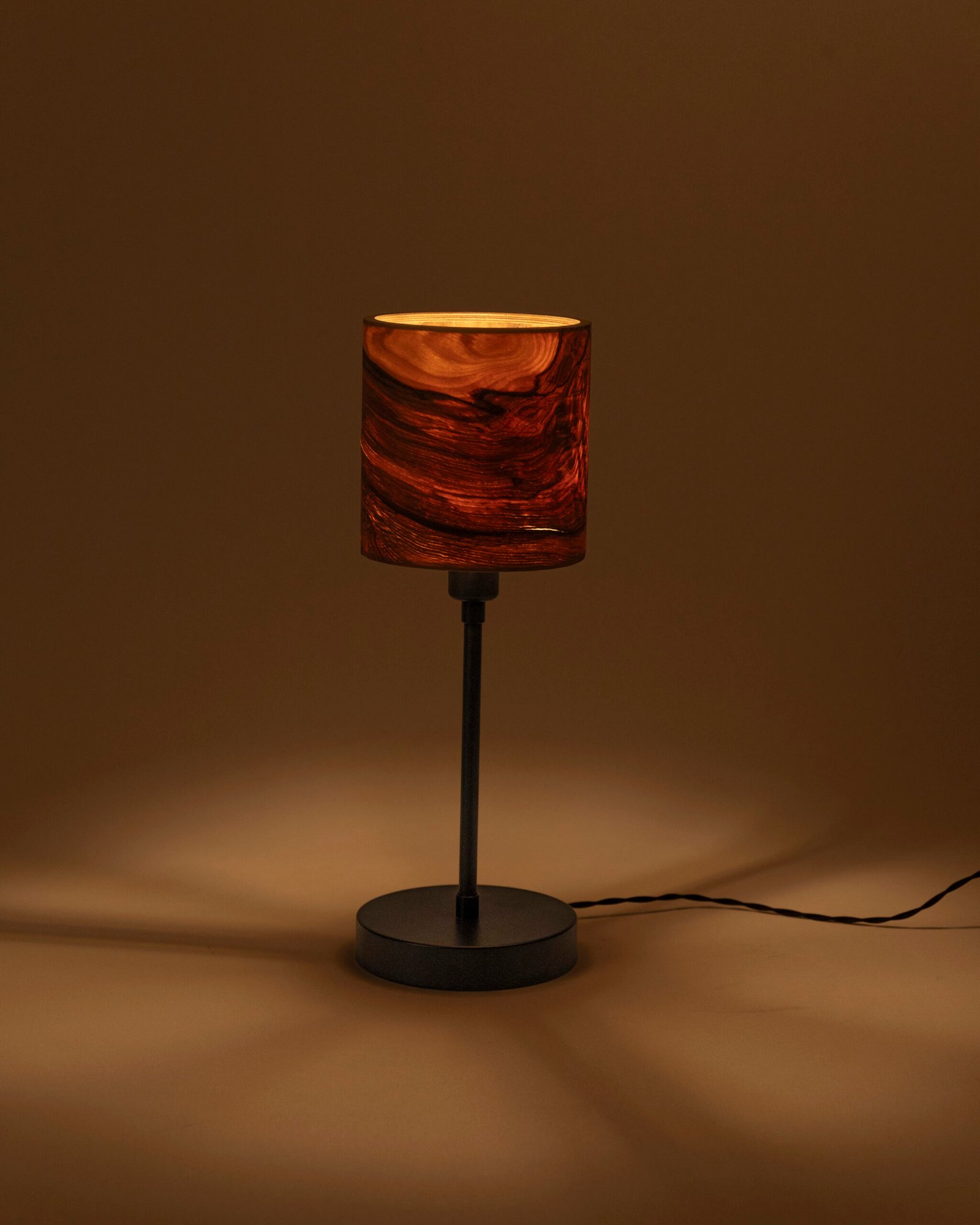 Die TORNİ Holz Tischlampe aus farbigem Esche Furnier kombiniert